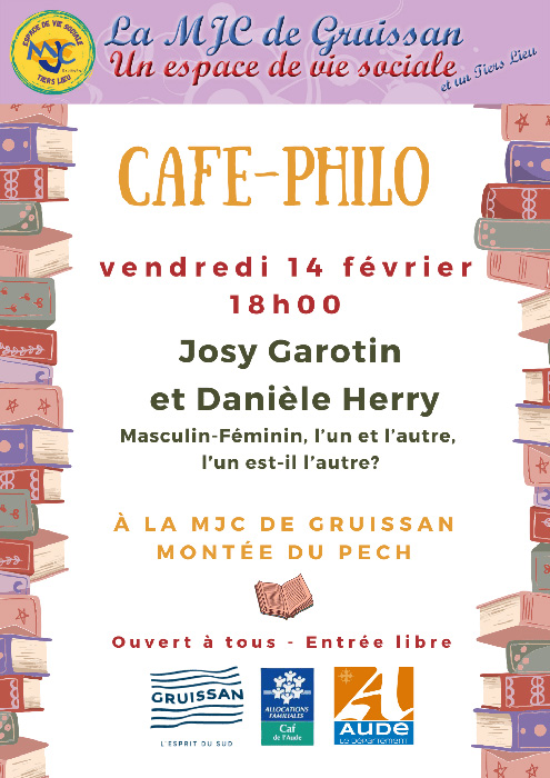 ENTREE LIBREVendredi 14 février, à 18h, Josy Garontin et Danielèle Herry animeront votre Café-Philo à la MJC de Gruissan.