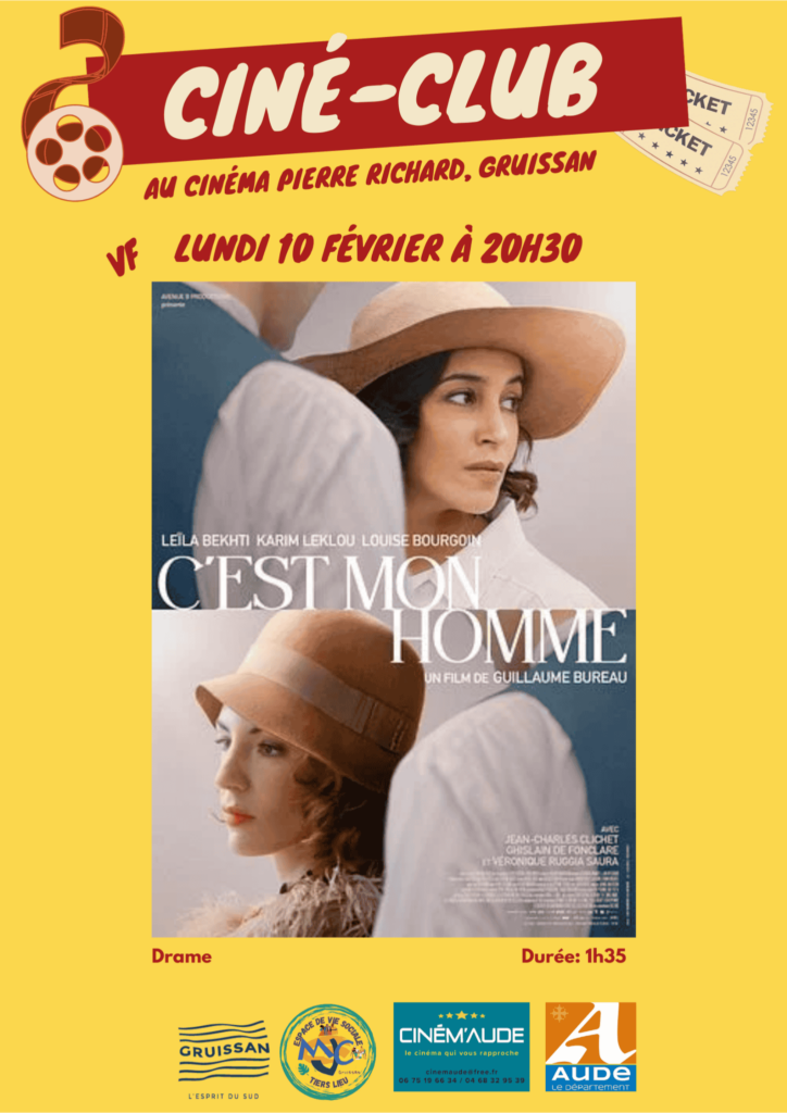 PRIX CINEMALundi 10 février, à 20h30, rendez-vous au cinéma de Gruissan pour la projection du film « C’est mon homme », de Guillaume Bureau.